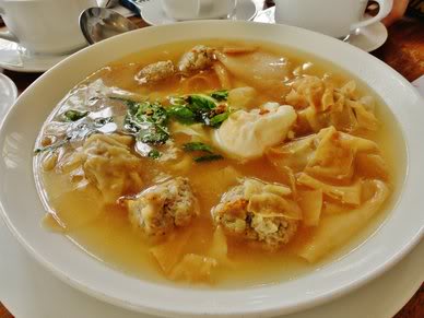 Let the feast begin! This is the Sopa Molo Castiliana. It's actually garlic soup with some dumplings and eggs!