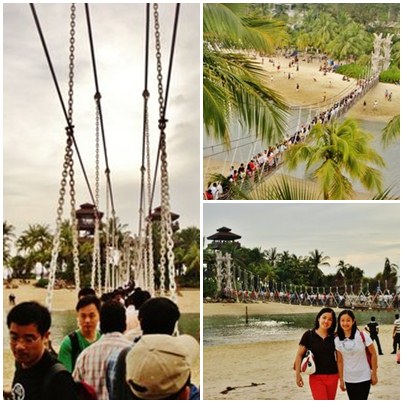 Before sunset, we got to Palawan Beach, an artificial, reclaimed beach that uses the sands from Indonesia and Malaysia. I was so scared to cross the hanging bridge because the Indians were jumping and making it so shaky.