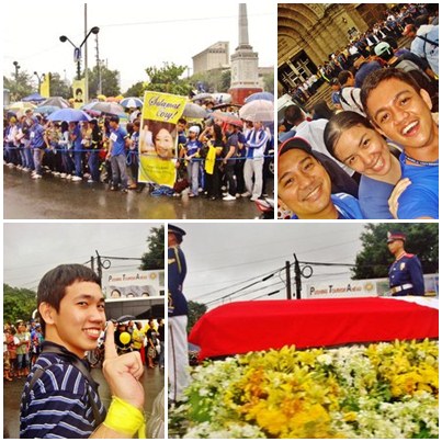 We watched from a giant screen the mass officiated by Fr. Arevalo. His homily was very touching and the last words by Kris Aquino left us all teary-eyed. After the mass, the rain poured so hard as we waited for the remains of Cory Aquino to pass by for the final procession. Despite the bad weather, catching a glimpse of the icon of democracy for the very first and last time is something I could proudly tell my grandkids someday